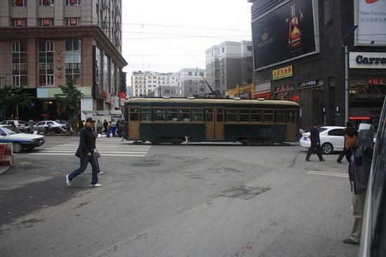 別具一格的有軌電車,據(jù)說是30年代一直沿用至今。(右上角黃色的招牌居然是“北京東來順”) 中午13:00登船離開大連。