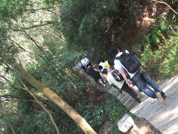 進(jìn)軍好漢坡!!沿著人工階梯順級而上,幾近90度的坡度讓人咋舌。