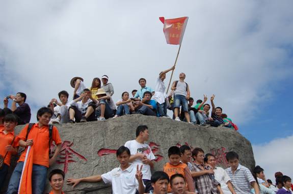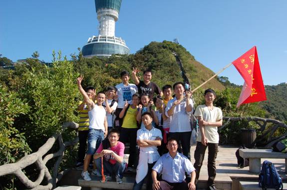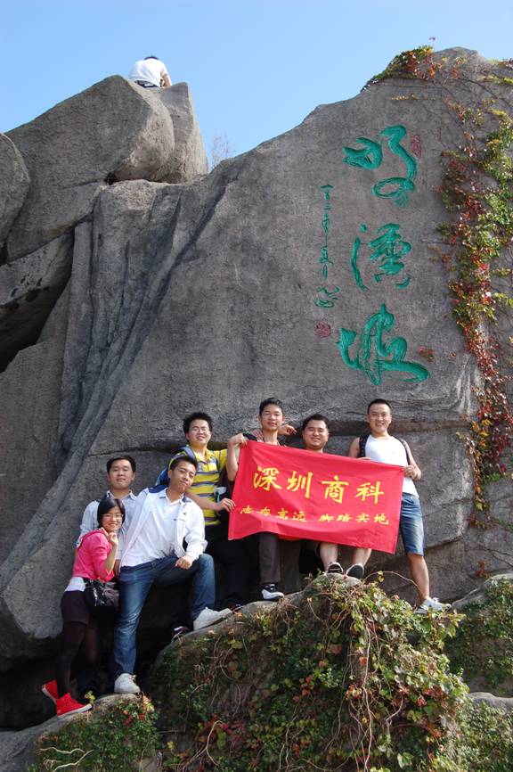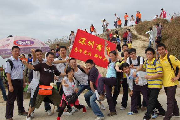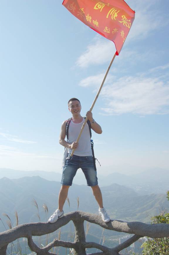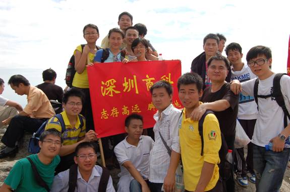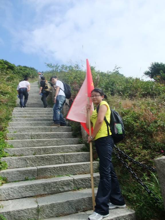 “深圳商科的紅旗在鵬程第一峰迎風(fēng)飄揚(yáng)----志存高遠(yuǎn),腳踏實(shí)地!” 歷盡千辛萬苦終于到了山頂,低頭看看那長長的臺階,心在跳,腿在抖,人到底還是上來了,“會(huì)當(dāng)凌絕頂,一覽眾山小”,看著遠(yuǎn)處的高樓大廈,有很強(qiáng)的成就感。
