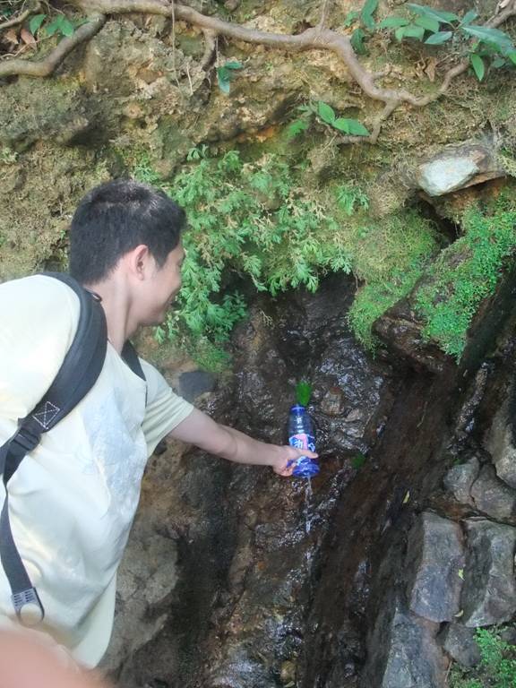 半途補(bǔ)充水源,排隊(duì)接山泉水。。瞧,一片樹葉,清澈甘甜的山泉水滴滴而下。梧桐山的這一方山水,對于滿眼鋼筋水泥、燈紅酒綠的深圳人來說,真可謂是一方不用燒香磕頭的心靈圣土、精神家園啊。
