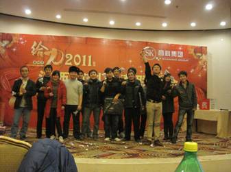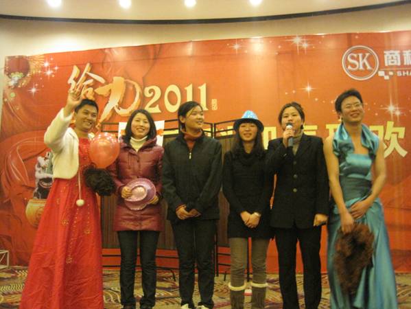 倉(cāng)儲(chǔ)部的節(jié)目,歌舞表演《纖夫的愛》,這個(gè)里面角色很齊嘛!除了兩位唱歌的外,還有兩位纖夫, 兩位妹妹,船里頭還有三個(gè)人物,也應(yīng)該算是妹妹了吧。 之前本來(lái)打算弄個(gè)木船的,后來(lái)想想,2011新的一年要有新的氣氛,我們就將把他變成了泰坦尼克號(hào)了, 希望我們公司所有同事和自己的愛人之間的感情既能像杰克和露絲那樣浪漫,有能像纖夫和妹妹那樣堅(jiān)定長(zhǎng)久。 本節(jié)目榮獲三等獎(jiǎng)。
