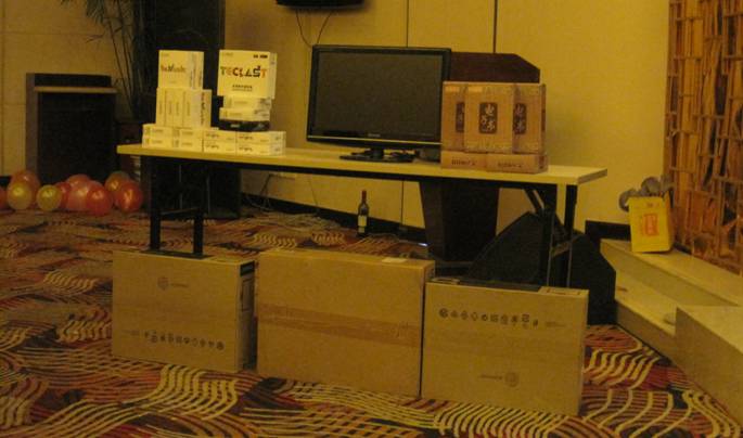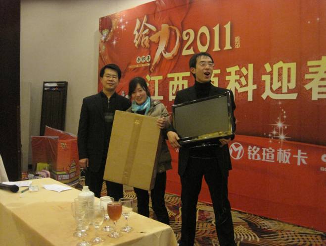 年會(huì)抽獎(jiǎng)品:液晶電視、顯示器、電子書、臺(tái)電數(shù)碼播放器、電話卡、臺(tái)電攝像頭。。。。。,很豐富呀,