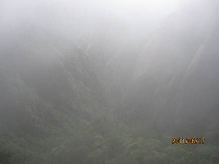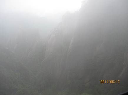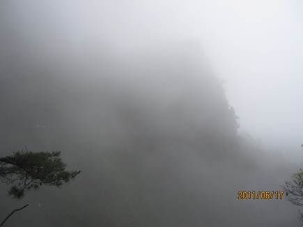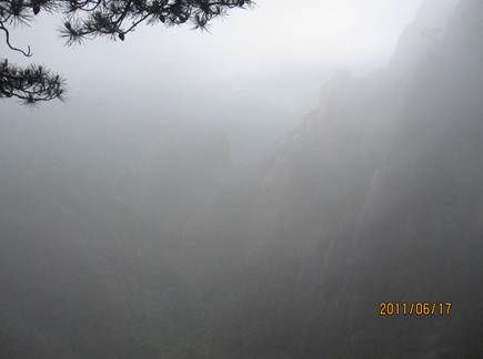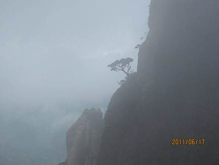 那天的三清山,由近而遠(yuǎn),霧色漸濃,仿佛進(jìn)入仙境。近處的松,清晰可見,遠(yuǎn)處的山巒在霧中若隱若現(xiàn),時(shí)節(jié)已進(jìn)入盛夏,山上仿佛依然初春。涼涼的風(fēng),輕輕地吹著薄薄的雨衣,靜靜地感受著風(fēng)吹雨衣的聲音,柔柔的呼吸著大山中的有氧離子,心里頓時(shí)得到釋放。