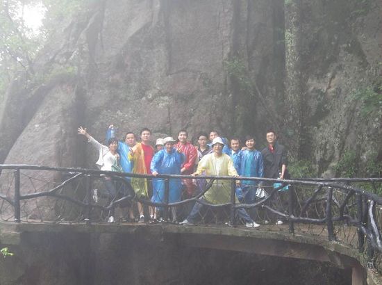 結(jié)束語(yǔ):雖然本次旅游的時(shí)間由于客觀原因推遲了一些, 途中還下了點(diǎn)小雨,但是這些都沒有影響到大家的心情,也許穿著雨衣爬山對(duì)于很多同事來說是人生的另一番體驗(yàn),額頭上除了汗水還有雨水,溫溫的汗水混合涼涼的雨水,給各自帶來的靈感,只有自己才知道。下山后,晴朗的天氣,依然給了大家一個(gè)保持良好心情的理由。人生的旅途,不會(huì)一帆風(fēng)順,也總是要經(jīng)歷風(fēng)雨之后才能見晴空,大家在經(jīng)歷風(fēng)雨的時(shí)候,請(qǐng)一定要記住,晴空就在前方,祝福大家。
