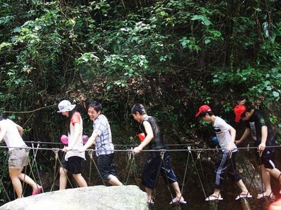 走進(jìn)銀盞谷,第一節(jié)目就是森林溯溪探險,從山腳一路溯溪而上,走獨木橋穿鐵索沿水流彎彎曲曲到達(dá)山頂,可能急著去漂流一路上走馬觀花然后沿山路而返,進(jìn)行今天最重要的節(jié)目------黃龍峽漂流!!