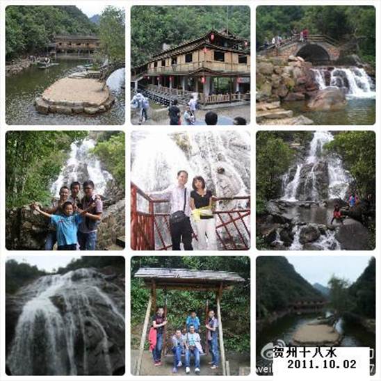 離開(kāi)姑婆山,旅游大巴將我們帶到了“十八水景區(qū)”,未進(jìn)景區(qū)就聽(tīng)見(jiàn)潺潺溪水聲,原來(lái)又是一處山高林深.瀑布成群的清涼去處。。我們沿山路拾階而上,一路上大小瀑布不斷,好景美不勝收。。