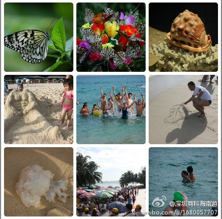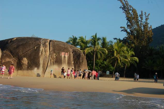 離別分界洲,午后參觀完蝴蝶館,隨后就來到了亞龍灣;迎面第一眼就看到了圖騰廣場,參觀了設在亞龍灣中心廣場底部的貝殼館,離開五彩繽紛的貝殼館區(qū),醒目的“天下第一灣”就映入眼前;一個半月形海灣,沙灘平緩,沙質潔白細軟,灣內波平浪靜,綠山環(huán)抱著清澈的海水,我們迫不及待地投身大海,與三亞來了一次最親密的接觸;海邊嬉戲,陽光。沙灘。大海。放松身心。放縱內心的慵懶,回歸到原位。。。