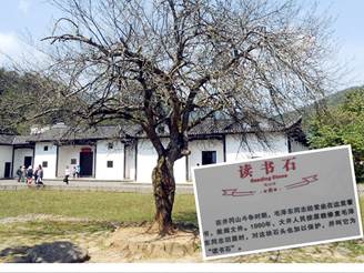 1927.10.24毛主席來(lái)到井岡山第一個(gè)住所—白屋,房前一棵大樹(shù)下的“讀書(shū)石”。