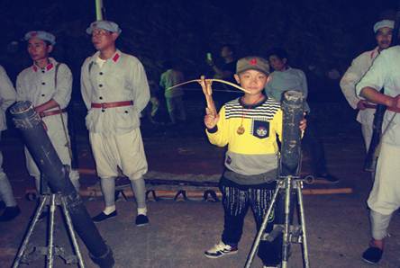 晚上我們到井岡山市區(qū),觀看紅軍劇場(chǎng)的井岡山大型實(shí)景演出。整個(gè)演出由600多名當(dāng)?shù)氐娜罕娧輪T參演,雖然演員都是業(yè)余的,但1個(gè)多小時(shí)的演出卻是感人肺腑。尤其是賀子珍把孩子托給老鄉(xiāng)大媽與孩子離別的這場(chǎng)戲,很多觀眾都流下了眼淚。演出的最后毛主席帶領(lǐng)紅軍離開(kāi)井岡山,幾百人的紅軍隊(duì)伍,牽著騾馬,經(jīng)過(guò)觀眾席與大家道別后依次列隊(duì)劇場(chǎng)出口的兩旁,送觀眾出場(chǎng),與觀眾合影,感覺(jué)好像回到了那個(gè)軍民一家親的年代。