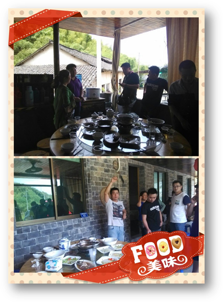 經(jīng)過三個半小時的車程,中午時分,終于來到了第一天的目的地---龍王山峽谷漂流。當然啦,對于一群吃貨而言,漂流之前肯定得飽餐一頓啦,為此,我們選擇了當?shù)馗浇囊患肄r(nóng)家樂,吃上了健康的有機綠色食物。在安吉,竹筍是每家每戶每餐必不可少的一道菜,在旅途的這兩天中,我們每餐的竹筍都是不一樣的,做法吃法各式各樣,但頓頓都是極其美味,極受歡迎,LOOK,我們上分都是“光盤”一族哦,表揚表揚~~~