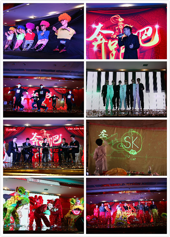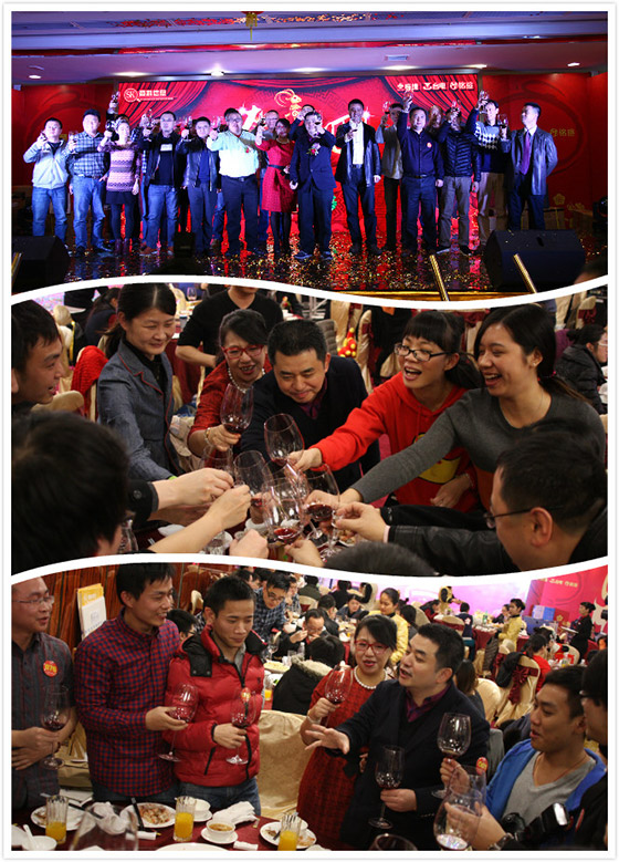 看完精彩的節(jié)目,天色已完全暗下來,大家已饑腸轆轆,酒店已經(jīng)開始端上可口的飯菜。晚宴開始前,孫總上臺為大家獻上新年的祝福,并攜同各部門經(jīng)理上臺為大家祝酒。祝酒結(jié)束,晚宴正式開始