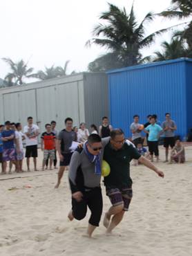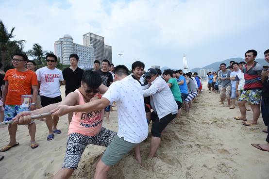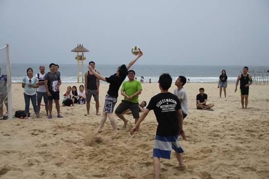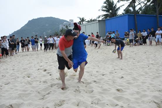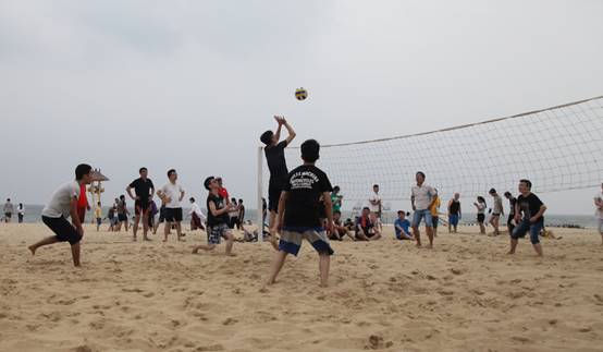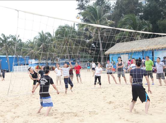 頭頂藍(lán)天,沐浴陽光,具有競技性的沙灘排球比賽開始了,大家光著腳板在金色柔軟的沙灘上,盡情的跳躍、翻滾、流汗,享受著這美妙的時光,充分釋放自己的好心情。