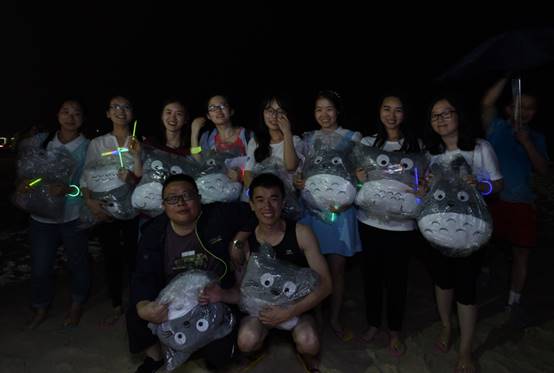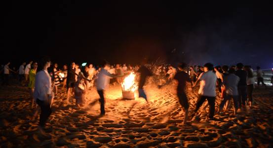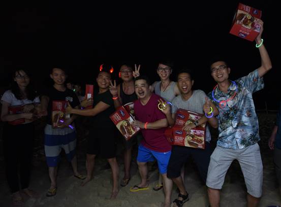 到了海邊,除了體驗美麗的海島風(fēng)情,當(dāng)然還要享受海鮮大餐,魚蝦蟹貝,美味的晚餐盛宴,讓大家大飽口福。大快朵頤之后,開始了篝火晚會。在海灘上,伴著陣陣的濤聲,歡快的音樂聲,大家挽著手,環(huán)成圈,跑著,跳著,忘卻一切壓力與煩惱,盡情歡暢。期間,還對下午比賽勝出的隊伍進(jìn)行了頒獎,沒有獲獎的隊伍也不要沮喪喲,你們都是最棒的!