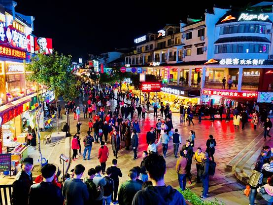 晚會(huì)在歡快的氣氛中結(jié)束,不過感覺有點(diǎn)意猶未盡呢~來陽朔當(dāng)然少不了要去益田洋人風(fēng)情西街啦,西街的異國風(fēng)情全國聞名,越到深夜越發(fā)熱鬧,商販云集,人來人往好不熱鬧。