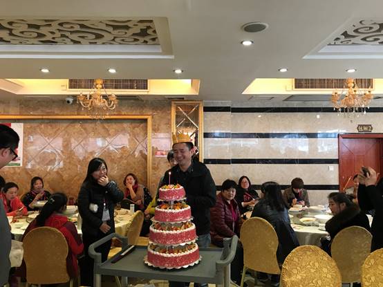 返程當(dāng)天,恰逢是商科集團(tuán)總經(jīng)理孫總的生日,午飯期間,大伙們悄悄準(zhǔn)備了生日蛋糕和小禮物,并送上生日歌和美好的祝福,現(xiàn)場歡聲不斷,連旁邊桌的朋友們都忍不住放下手上的美味,共同為孫總慶賀生日。