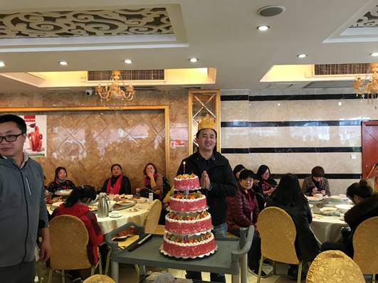 在陣陣祝福聲中,孫總許下了愿望,與大家分享美味的水果蛋糕,大廳充滿了歡聲笑語~