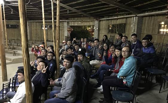 2017年12月1日下班后,汽車載著技術(shù)部的一群歡脫的小伙伴,奔赴此次旅行的目的地廣西賀州,一路上歡聲笑語,“表情包猜謎游戲”玩得不亦說乎,芥末壽司不失為游戲“獎(jiǎng)賞”之王,讓同事們“感動(dòng)”得熱淚滿眶。