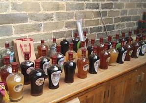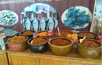 小鎮(zhèn)的街道建筑古色古香,青灰石板小路。可能是因?yàn)槲覀儼滋斓剑慰秃苌伲抗馑酱蠖嗍悄赀~的老人,少量的商鋪開著門,賣著醬菜,糯米酒、桂花香、青梅酒等釀酒,很多酒吧大門緊閉。