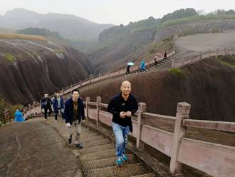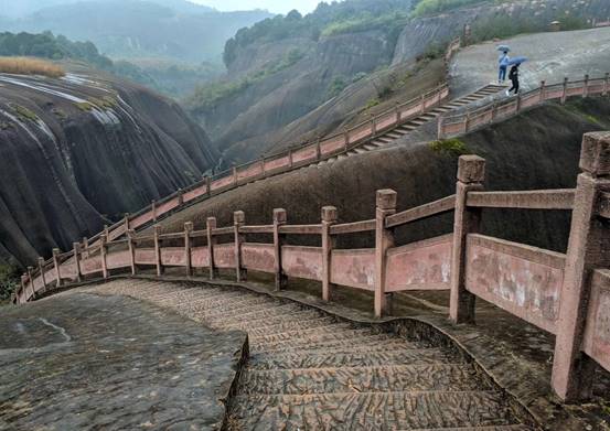 在微雨的郴州我們迎來十二月的第一天。空氣濕潤,氣溫微涼,讓人神清氣爽。乘坐大巴車來到古代著名旅行達(dá)人徐霞客打卡的飛天山。他曾贊嘆飛天山“無寸土不麗,無一山不奇”,境區(qū)山頂相連,溝壑縱橫,山環(huán)水繞,寨坦錯(cuò)落,精巧處如精雕細(xì)琢,巧奪天工,宏偉處如橫空出世,壯志凌云。