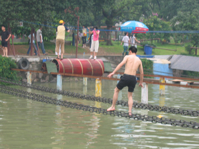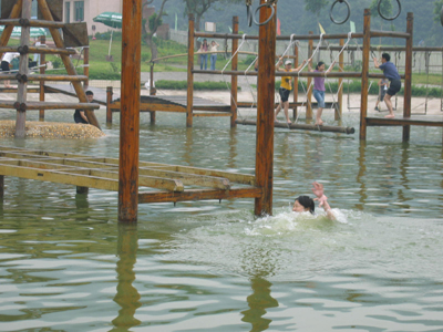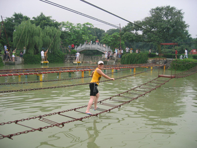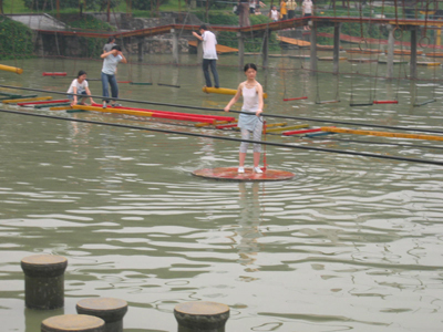 有個(gè)“仙女”居然雙腳“離水”三尺,踩著繩梯悠閑自得的走來(lái)走去。