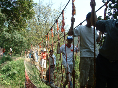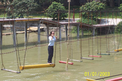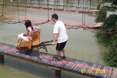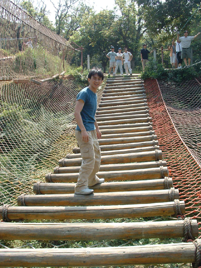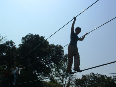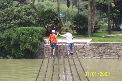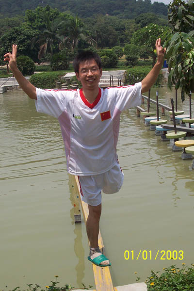 來個“金雞獨(dú)立”架勢,挑戰(zhàn)自己的勇氣。