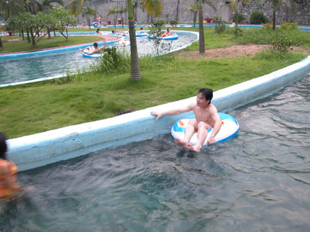 在這個項目中,大概隔半個小時左右就會有大概十分鐘左右的人工浪,在中心地帶,浪高大概有1米有余,雖然不能像傳說中的那樣,可以劃板沖浪,但是坐在水圈上隨波逐流也是一翻非常舒服的顯示,在這個過程中,通常大家會和一些認(rèn)識的和不認(rèn)識的一起在中心處一起鬧哄,其樂融融,非常的不錯。