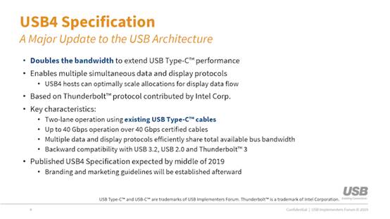 現(xiàn)今的USB 3.2技術(shù),可以使數(shù)據(jù)傳輸速度達到20 Gbps。而USB 4承諾將速度提高到40 Gbps,這對于使用多個外接顯示器或從外部硬盤驅(qū)動器獲取文件將很有幫助。
