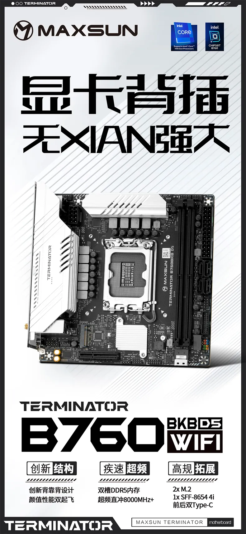 另一臺(tái)游戲主機(jī)則采用了MS-Terminator B760BKB D5 WIFI主板,重新定義ITX形式,主板和顯卡背靠背設(shè)計(jì),無需轉(zhuǎn)接延長(zhǎng)線,避免性能損失,節(jié)省價(jià)錢的同時(shí),充分發(fā)揮顯卡性能,體積小、性能強(qiáng)、顏值高。