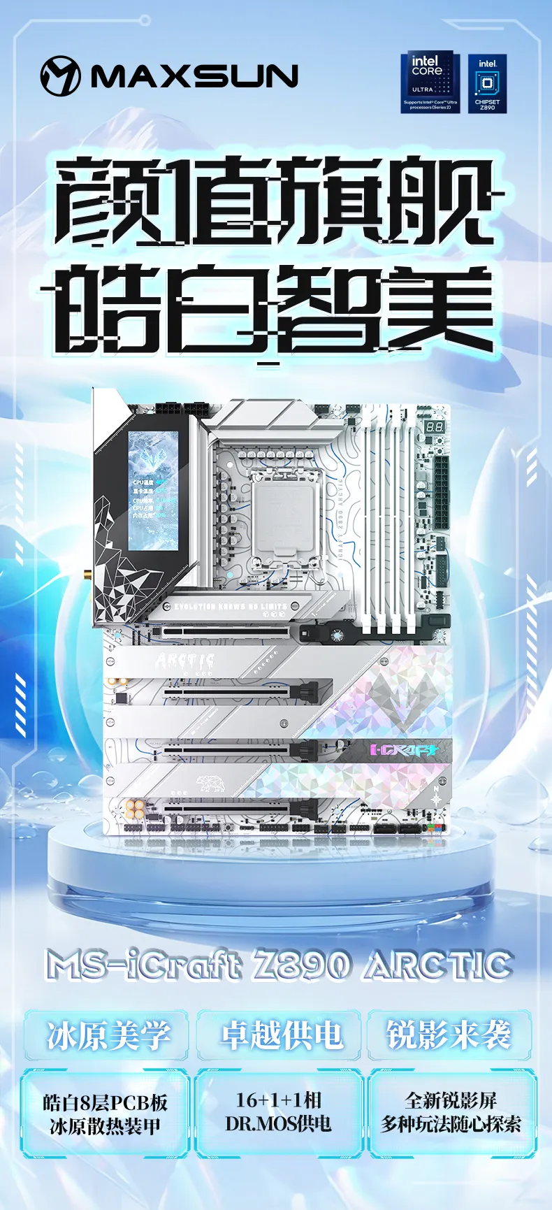 MS-iCraft Z890 Arctic(北冰洋),新一代冰原美學(xué)設(shè)計(jì),科技與自然美感融合給用戶帶來不一樣的視覺與性能體驗(yàn)。擁有2x Thunderbolt™ 4,高達(dá)9個(gè)USB 10G接口,1*SFF-8654 4i拓展接口,PCIE5.0 x16顯卡插槽+PCIE5.0 x4 M.2接口,支持PCIE5.0通道拆分,外觀性能雙旗艦。