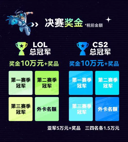 本次總決賽的獎(jiǎng)金額度十分豐厚,總獎(jiǎng)金高達(dá)數(shù)十萬(wàn)元人民幣。其中,總冠軍將獲得 10 萬(wàn)元現(xiàn)金獎(jiǎng)勵(lì)以及價(jià)值不菲的獎(jiǎng)品;亞軍也能收獲 5 萬(wàn)元獎(jiǎng)金和精心準(zhǔn)備的禮品;季軍和殿軍同樣能分別得到 1.5 萬(wàn)元的獎(jiǎng)勵(lì)。這份榮譽(yù)不僅僅是對(duì)選手們長(zhǎng)期努力的高度認(rèn)可,更是為他們?cè)谖磥?lái)的電競(jìng)逐夢(mèng)之路上提供強(qiáng)大的支持與動(dòng)力。