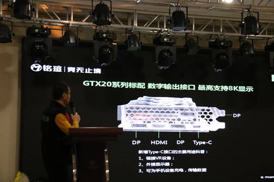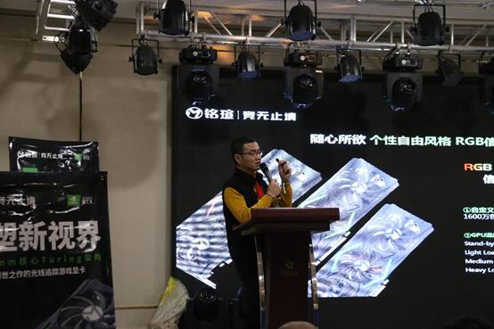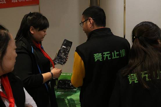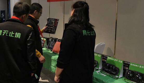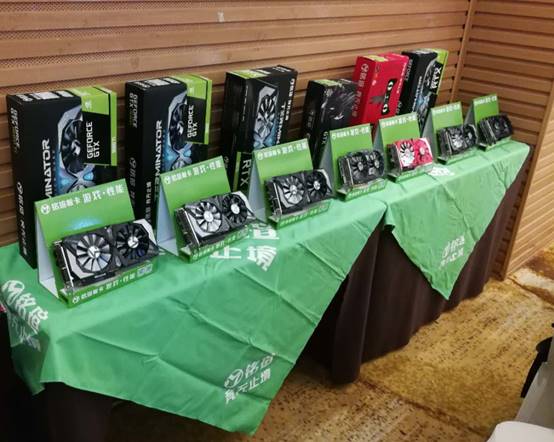 會(huì)議現(xiàn)場(chǎng),展示了系列顯卡,新一代搭載英偉達(dá)圖靈架構(gòu)的RTX 20系列顯卡,具有第四代太極陰陽(yáng)散熱系統(tǒng)、RGB燈效、定制背板、全新太極扇葉等多項(xiàng)功能,保證玩家在享受游戲刺激時(shí)仍然保持顯卡溫度低狀態(tài),滿(mǎn)足高端網(wǎng)吧的業(yè)務(wù)需求。現(xiàn)場(chǎng)的小伙伴們也迫不及待地進(jìn)行了體驗(yàn)。