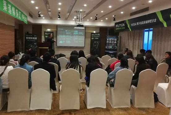 會(huì)議開(kāi)場(chǎng)后,NVIDIA網(wǎng)吧業(yè)務(wù)代表?xiàng)畛沙鱿吮敬螘?huì)議,并在會(huì)議上作出了演講,為現(xiàn)場(chǎng)客戶(hù)詳解了新品知識(shí)。