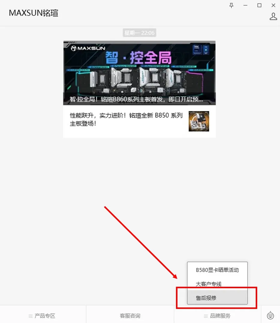 銘瑄始終將用戶體驗放在首位,為了給廣大用戶帶來更加便捷、高效的售后服務體驗,銘瑄官方公眾號現(xiàn)已支持售后報修功能,幫助用戶輕松解決產品售后問題。當用戶需要進行報修時,只需點擊銘瑄公眾號右下方【品牌服務】欄目,選擇【售后報修】即可進入報修小程序。