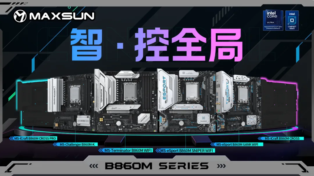 本次發(fā)售的銘瑄B860系列主板首發(fā)涵蓋Terminator、eSport、Challenger 三大系列五款新品,全面支持銘瑄最新的PTM UI BIOS。
