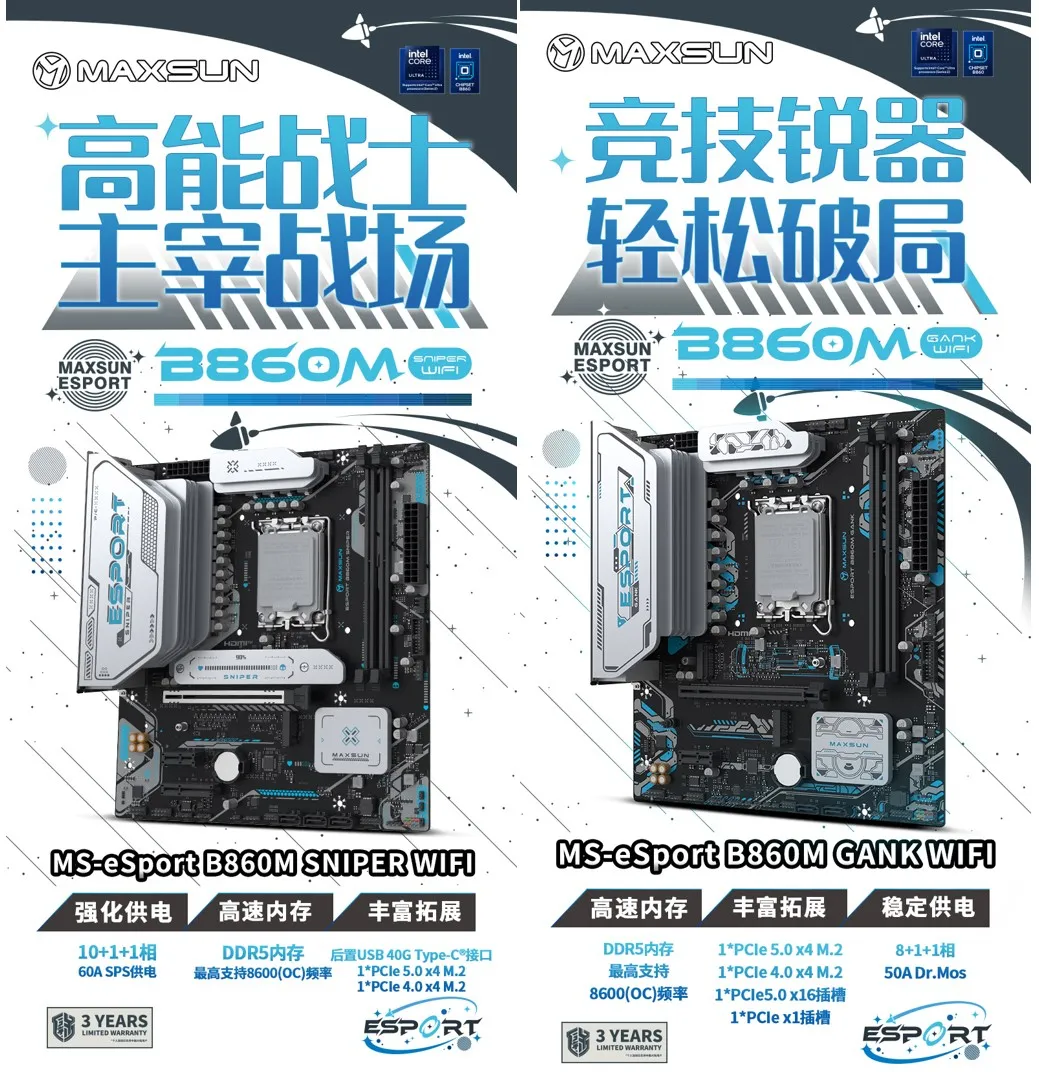 eSport系列專為硬核電競(jìng)玩家而生,首發(fā)MS-eSport B860M SNIPER WIFI和MS-eSport B860M GANK WIFI兩款,從型號(hào)名便彰顯其競(jìng)技基因。兩款主板均配備2個(gè)DIMM高速DDR5內(nèi)存插槽,最高支持8600(OC)頻率,2*M.2滿速接口,以及WiFi6無(wú)線網(wǎng)卡,數(shù)據(jù)高速傳輸,網(wǎng)絡(luò)連接穩(wěn)定流暢。