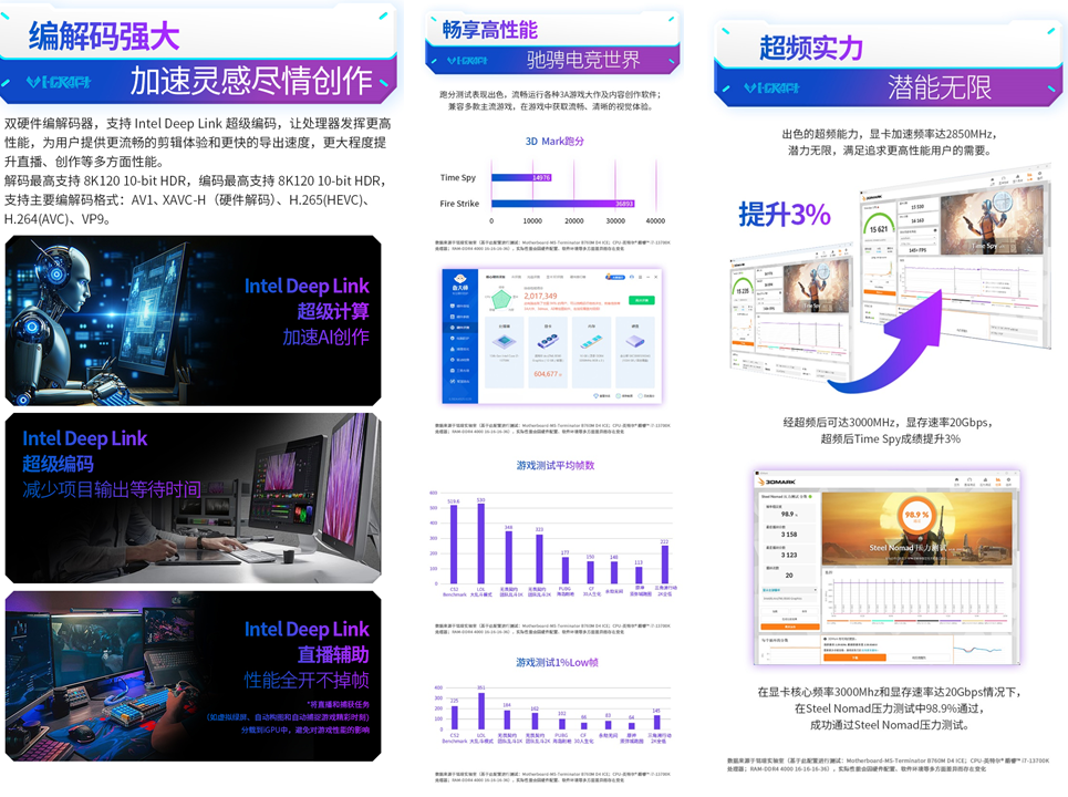 除了強(qiáng)散熱優(yōu)勢(shì),這款顯卡還擁有高頻率的卓越潛能。MAXSUN Intel Arc B580 iCraft 12G出廠Turbo頻率高達(dá)2850MHz,通過(guò)在驅(qū)動(dòng)中進(jìn)行超頻,頻率甚至可以進(jìn)一步提升至3000MHz以上,滿(mǎn)足追求更高性能的用戶(hù)需求,讓《戰(zhàn)地 6》的高幀率、高畫(huà)質(zhì)表現(xiàn)更上一層樓。接口方面,提供3個(gè)DP2.1和1個(gè)HDMI2.1a輸出接口,多屏體驗(yàn)、高清視覺(jué)盡在掌握。此外,它的編解碼能力也十分卓越,雙硬件編解碼器支持AV1、H265和H264等主流編解碼格式,還支持了HAVC-H解碼,不僅能為游戲直播提供清晰流暢的畫(huà)面輸出,更能為專(zhuān)業(yè)攝影剪輯帶來(lái)高效體驗(yàn),兼顧游戲與創(chuàng)作雙重需求。