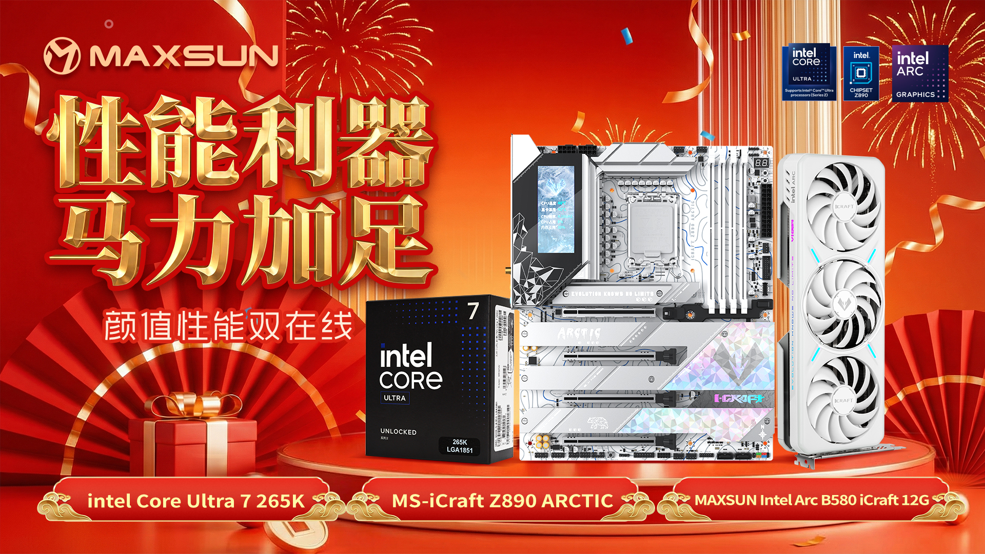 新年宅家,想要暢玩《三角洲》等各類游戲大作,英特爾酷睿Ultra 7 265K處理器搭配銘瑄iCraft Z890 Arctic主板與MAXSUN Intel Arc B580 iCraft 12G顯卡的組合無疑是理想之選。這套組合兼顧顏值與性能,無論是硬核玩家還是DIY主機愛好者,都能獲得強悍的使用體驗。不妨升級你的硬件裝備,開啟新年的游戲征程吧!