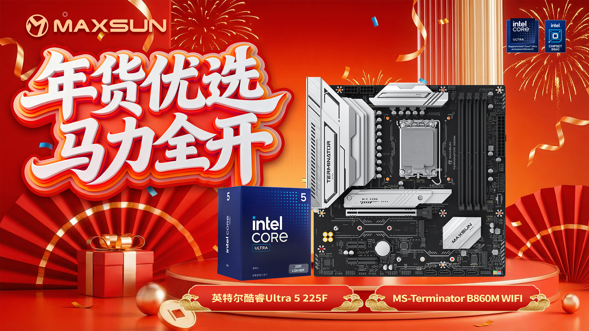 臨近新年,年貨節(jié)裝機熱潮來襲。無論是學(xué)生黨想要組裝入門主機、打工人計劃升級設(shè)備,還是游戲玩家籌備專屬電競主機,一套高性價比硬件組合仍是大眾主流優(yōu)選。在此推薦一套兼顧性能與實用的年貨硬件組合 —— 銘瑄 Terminator B860M WIFI 主板搭配英特爾酷睿 Ultra 5 225F 處理器,這套組合能讓你以合理的預(yù)算,解鎖旗艦級的絲滑體驗,兼顧了高性價比與強悍性能,堪稱年貨節(jié)裝機性價比標(biāo)桿。