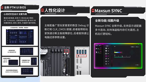 除了強(qiáng)悍的性能,這款主板在操作便捷性和個(gè)性化上也格外貼心。全新升級(jí)的 PTM UI BIOS,借鑒了手機(jī) APP 的交互邏輯,采用模塊化設(shè)計(jì),交互層級(jí)不超過 2 層。卡片式的界面一目了然,就算是裝機(jī)新手,也能輕松搞定 BIOS 設(shè)置。分布式 Debug 診斷燈和 CLR_CMOS 快捷按鈕,更是能快速定位故障,讓裝機(jī)過程省心又省力。它還支持RGB光效同步,可與顯卡、內(nèi)存等外設(shè)實(shí)現(xiàn)燈光聯(lián)動(dòng),炫酷燈光效果隨心切換,無論是打造酷炫的黑色電競(jìng)主機(jī),還是組裝顏值爆表的純白海景房,都能完美適配,輕松拿捏氛圍感。