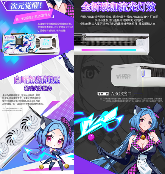 銘瑄 GeForce RTX 5070 iCraft OC12G 璦珈顯卡不僅性能強(qiáng)勁,顏值也十分出眾,高度契合玩家的審美需求。外觀上延續(xù)了溫潤質(zhì)感的設(shè)計(jì)基調(diào),采用全新白曜銀爍鍍層,通過環(huán)保免噴涂注塑工藝,無需化學(xué)噴涂即可實(shí)現(xiàn)珍珠白漸變閃銀效果,從溫潤乳白到冷峻銀輝,每一道光影折射都呈現(xiàn)出獨(dú)特質(zhì)感。側(cè)邊創(chuàng)新加入星河流光燈條,搭配升級(jí)的 ARGB 燈光同步燈效,玩家通過包裝附帶的 ARGB 5V3Pin 燈光同步線與主板連接,即可實(shí)現(xiàn)燈光同步,燈光流轉(zhuǎn)間如同賽博世界的魔法光芒,靈動(dòng)又吸睛。高強(qiáng)度合金背板不僅為顯卡提供了穩(wěn)固防護(hù),防止顯卡因自重而彎曲,還搭載了 Q 版璦珈燈效,萌力與科技感完美融合,讓顯卡即便靜置時(shí),也能成為桌面一道亮眼的風(fēng)景。