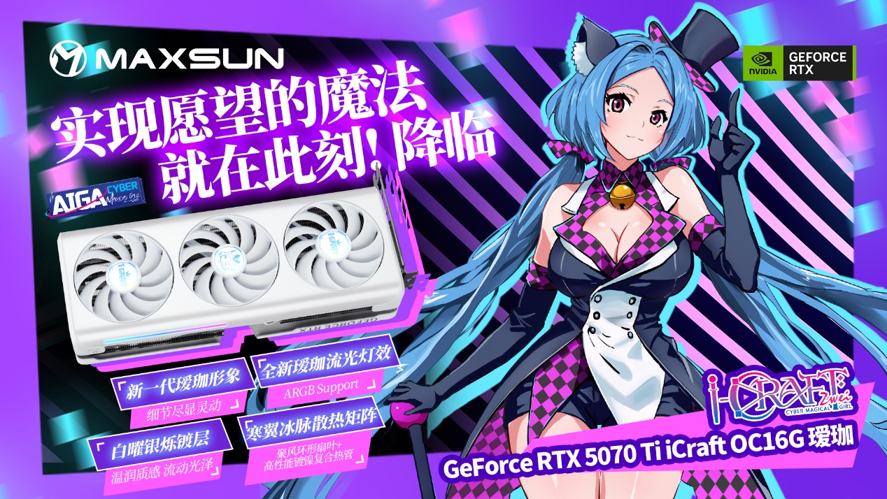 如果說主板是性能基石,搭配的銘瑄GeForce RTX 5070 Ti iCraft OC16G 璦珈顯卡,更是4K光追的核心底氣。這款顯卡搭載NVIDIA 全新Blackwell架構(gòu),內(nèi)置8960個CUDA核心,配合16GB GDDR7高速顯存與256bit顯存位寬,相較上一代性能直接翻倍,能輕松滿開各類新游的光追特效,讓《遺忘之海》的光影折射、《噩夢邊境》的環(huán)境細(xì)節(jié),都展現(xiàn)出最細(xì)膩的質(zhì)感,沉浸式游戲體驗拉滿。