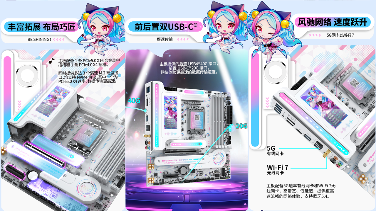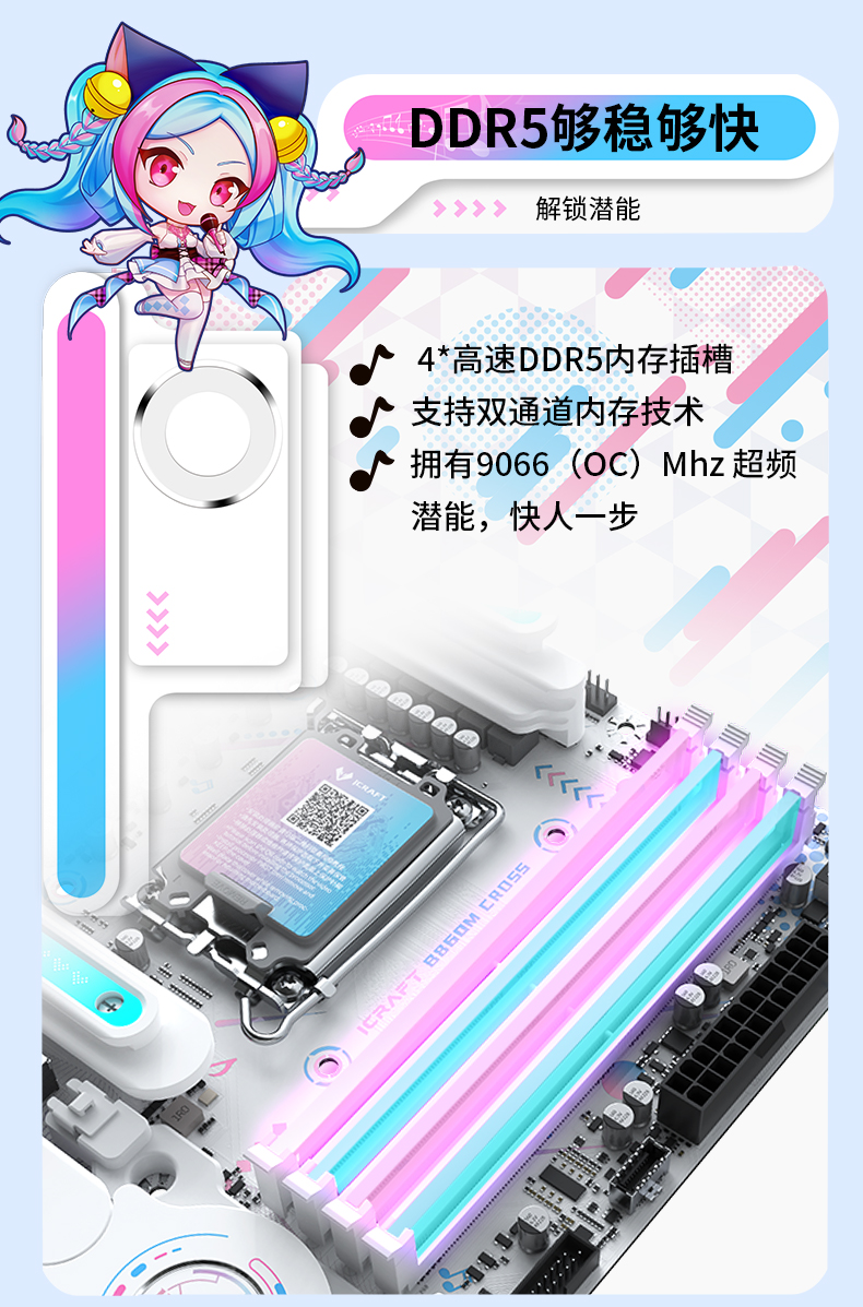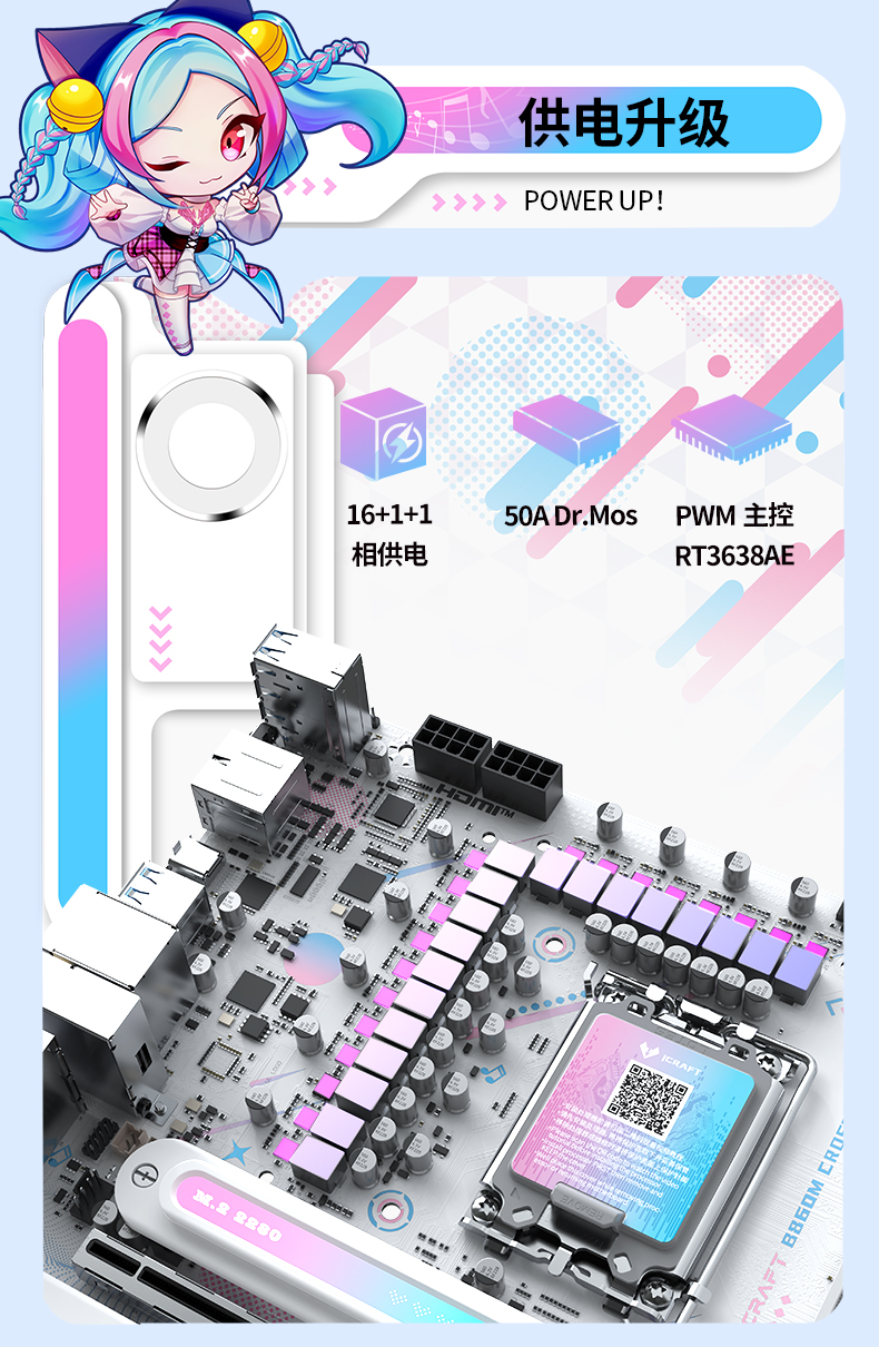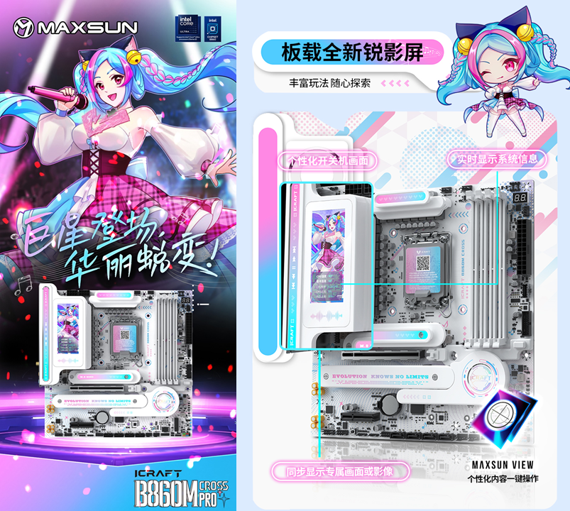 銘瑄 iCraft B860M CROSS PRO主板憑借二次元美學設計、強悍的供電性能、出色的內存潛力、豐富的拓展接口、穩(wěn)定的網(wǎng)絡連接、便捷的操作體驗和個性化的燈光效果,成為英特爾酷睿Ultra 200S Plus系列處理器的新芯性能搭檔,更是打造個性化主機玩家的裝機優(yōu)選。3 月 26 日新處理器正式開售,選擇銘瑄 iCraft B860M CROSS PRO主板,讓你在打造高顏值個性化主機的同時,輕松解鎖新芯滿幀戰(zhàn)力,從容迎戰(zhàn)游戲、創(chuàng)作、辦公等各類使用場景,開啟顏值與性能雙在線的硬件全新體驗!