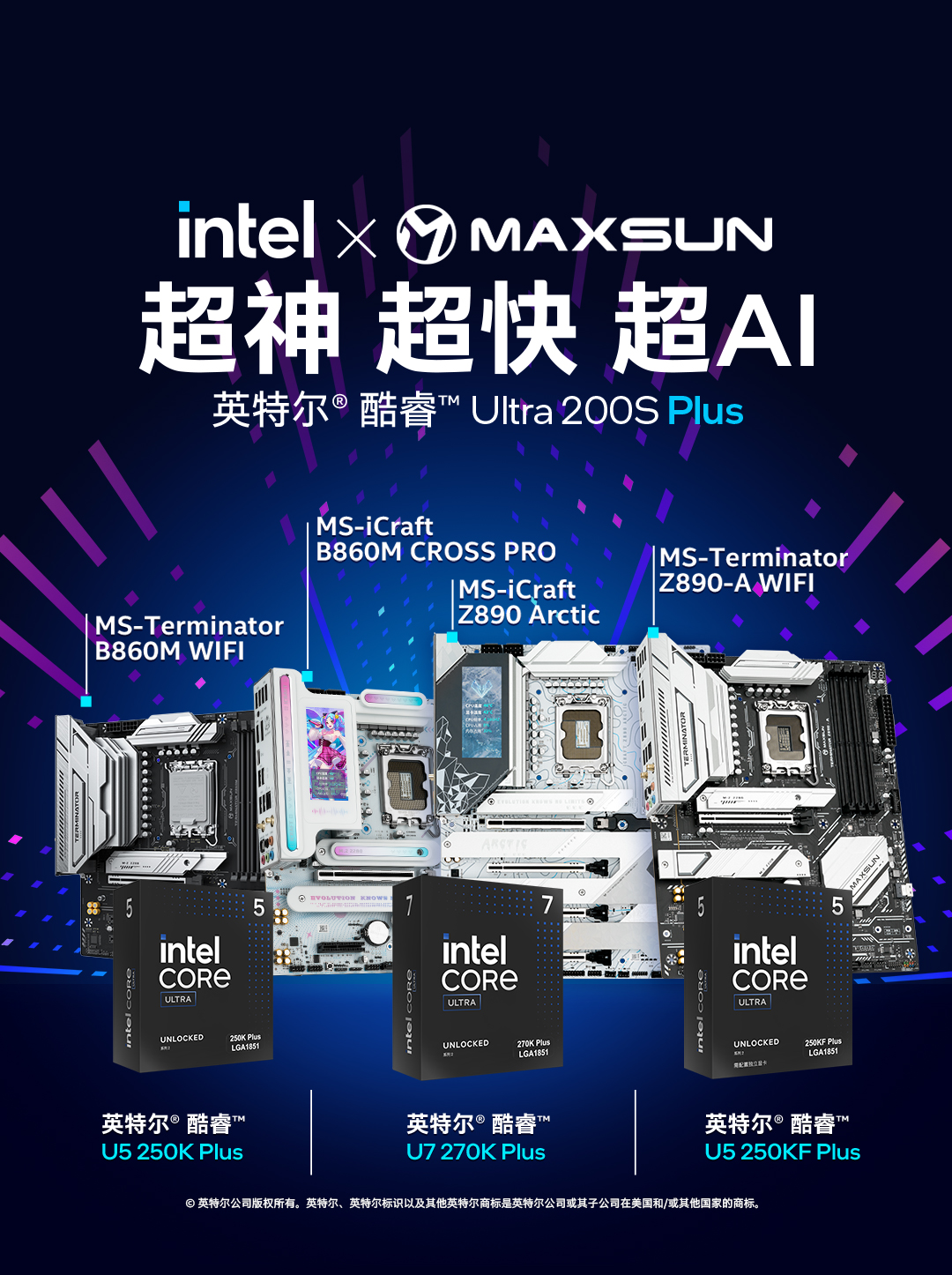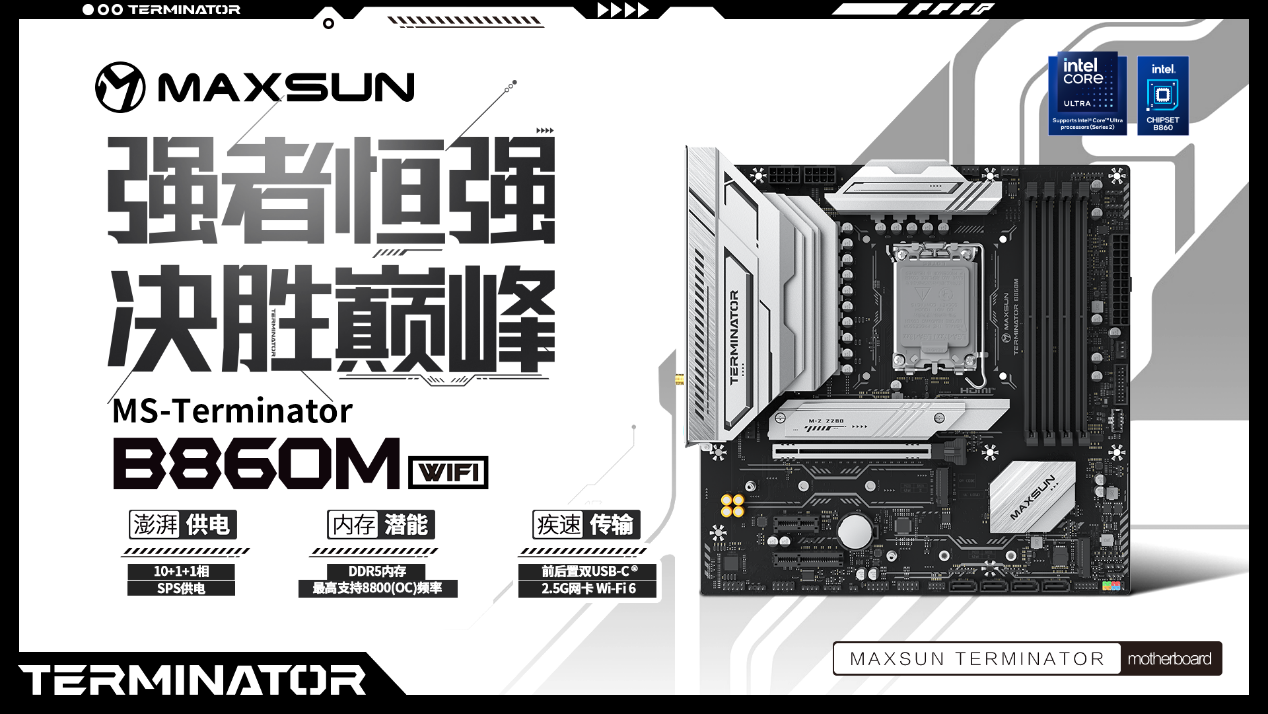 好馬配好鞍,好芯需配好板。想要充分釋放英特爾酷睿 Ultra 200S Plus 系列處理器的強悍潛能,適配的主板至關(guān)重要。銘瑄 Intel 800 系列主板全面支持英特爾 ® 酷睿™Ultra 200S Plus 系列處理器,其中銘瑄 iCraft Z890 ARCTIC、銘瑄 Terminator Z890-A WIFI、銘瑄 iCraft B860M CROSS PRO、銘瑄 Terminator B860M WIFI 四款標桿產(chǎn)品,均原生適配 LGA 1851 插槽,與新處理器無縫兼容,更以差異化的硬核規(guī)格、個性化的設(shè)計風格,適配不同玩家的裝機需求,讓新芯性能發(fā)揮毫無掣肘。