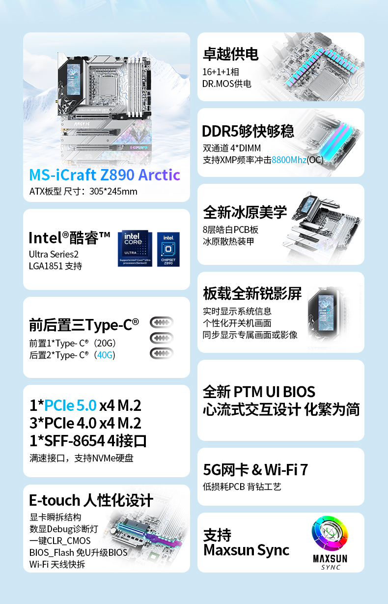 <MS-iCraft Z890 ARCTIC:冰原美學標桿,顏值性能雙巔峰>